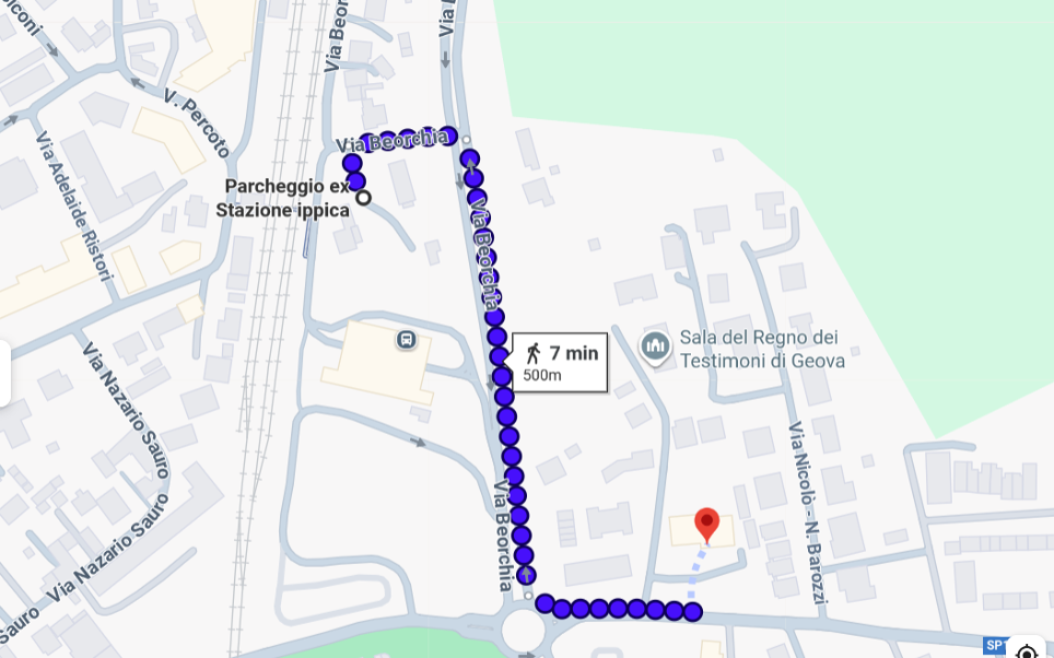 Map from Hotel Residence Il Giardino del Cigno to Ex – Stazione Ippica – Distance 500 m (walking distance 7 minutes):