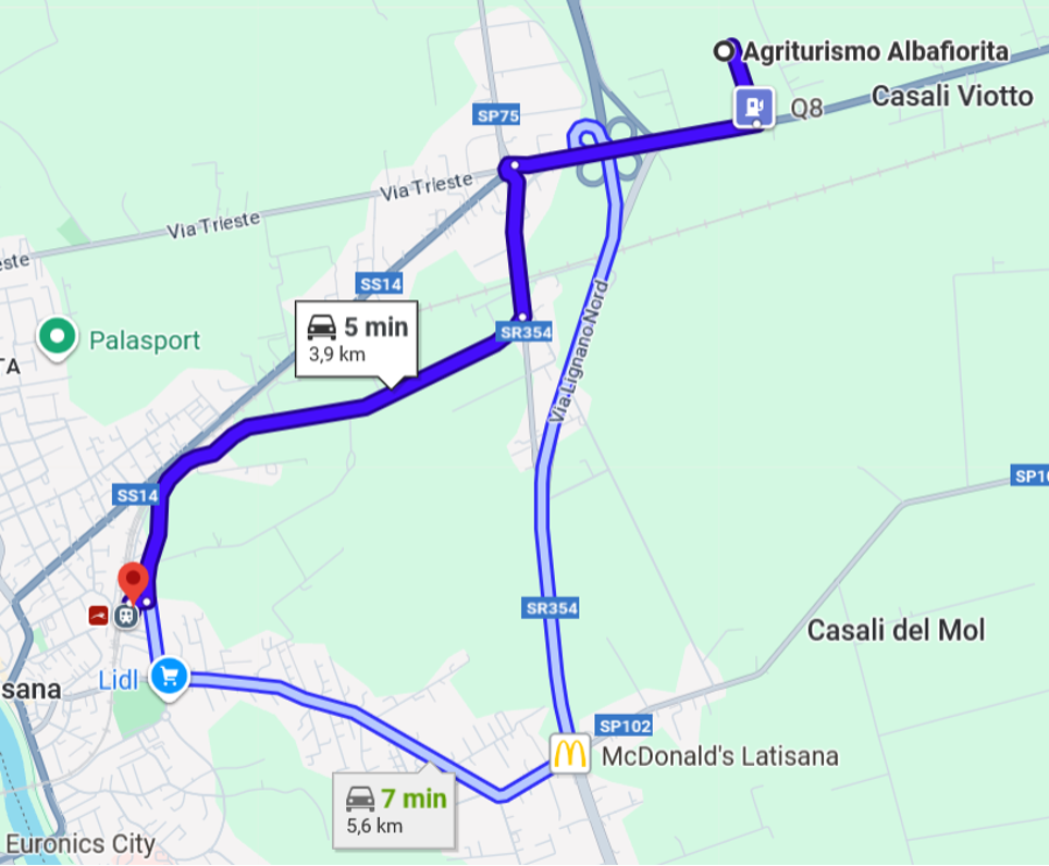 Mappa from Agriturismo AlbaFiorita to Ex – Stazione Ippica – Distance 3.9 Km (5 minutes by car):